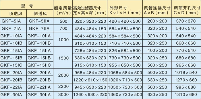 ?GKF系列高效、亚高效送风口广泛用于改建和新建不同级别的洁净室。选用GKF系列送风口是缩短空气洁净工程设计和施工周期的有效途径,具有投资少、施工简便等特点。